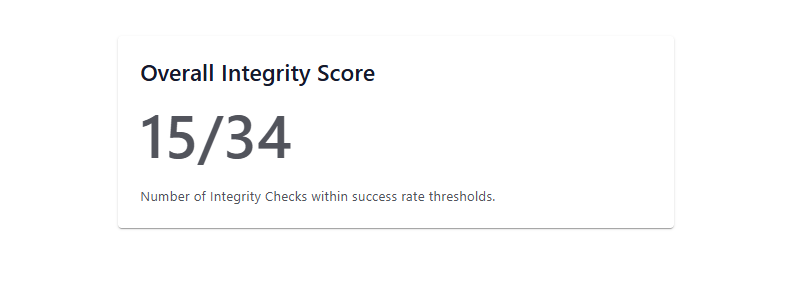 - Average: Shows you an average score of all the Integrity checks ( passing and failing)