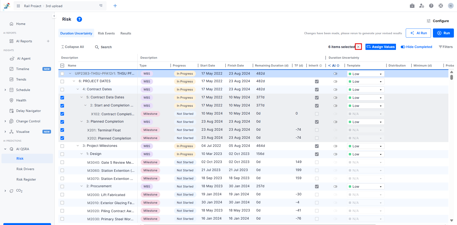 - AI Recommendations: Utilize AI to suggest duration uncertainty values for your activities or WBS.