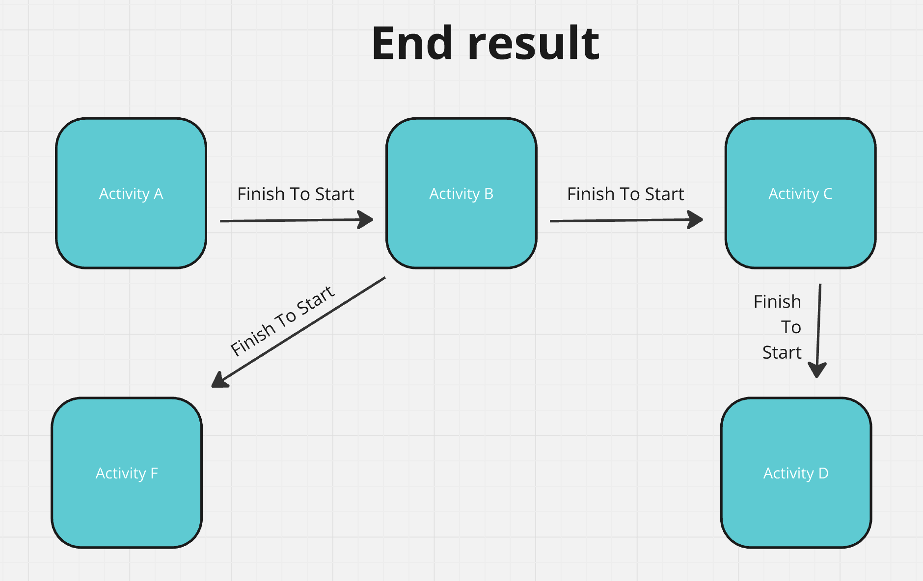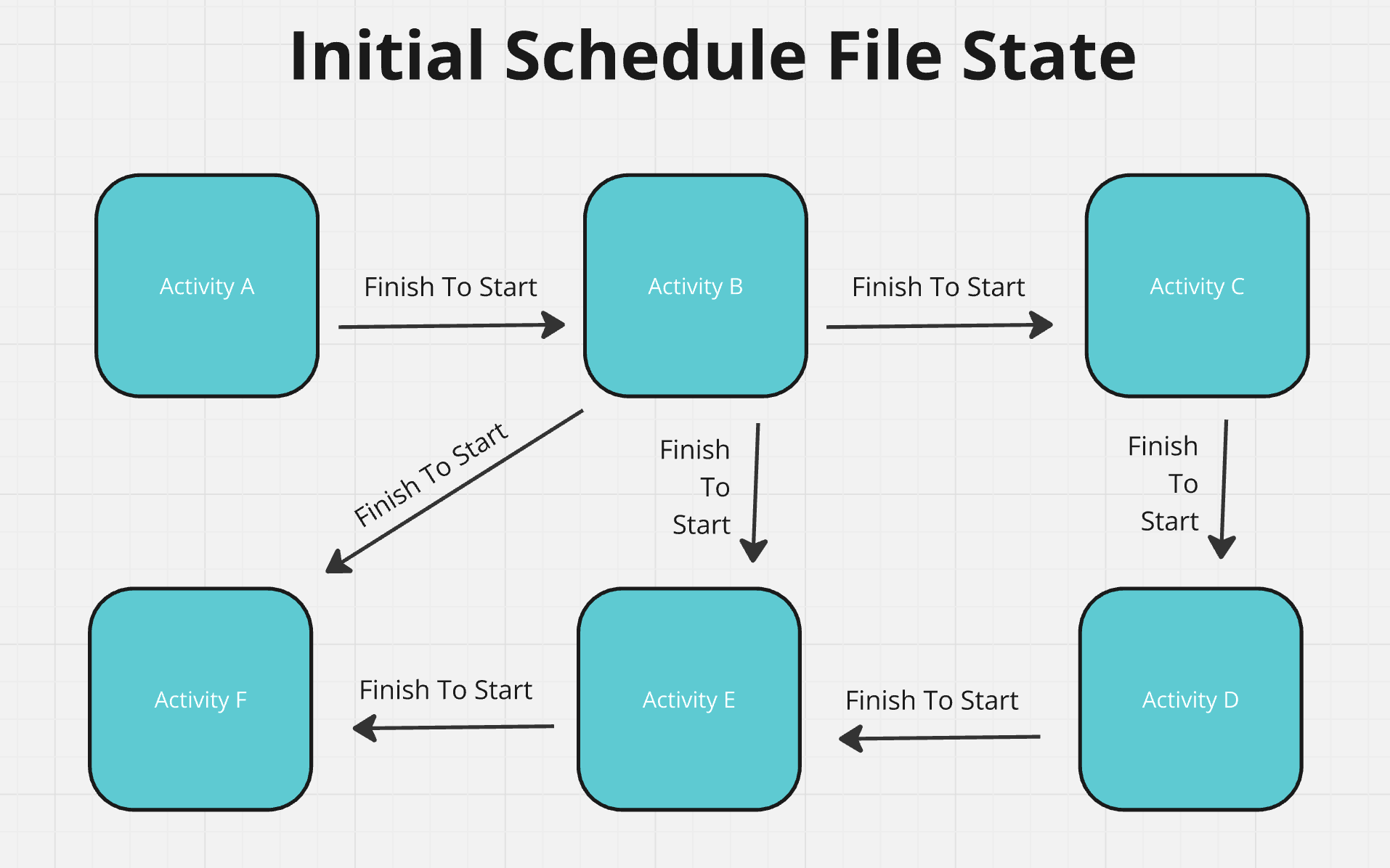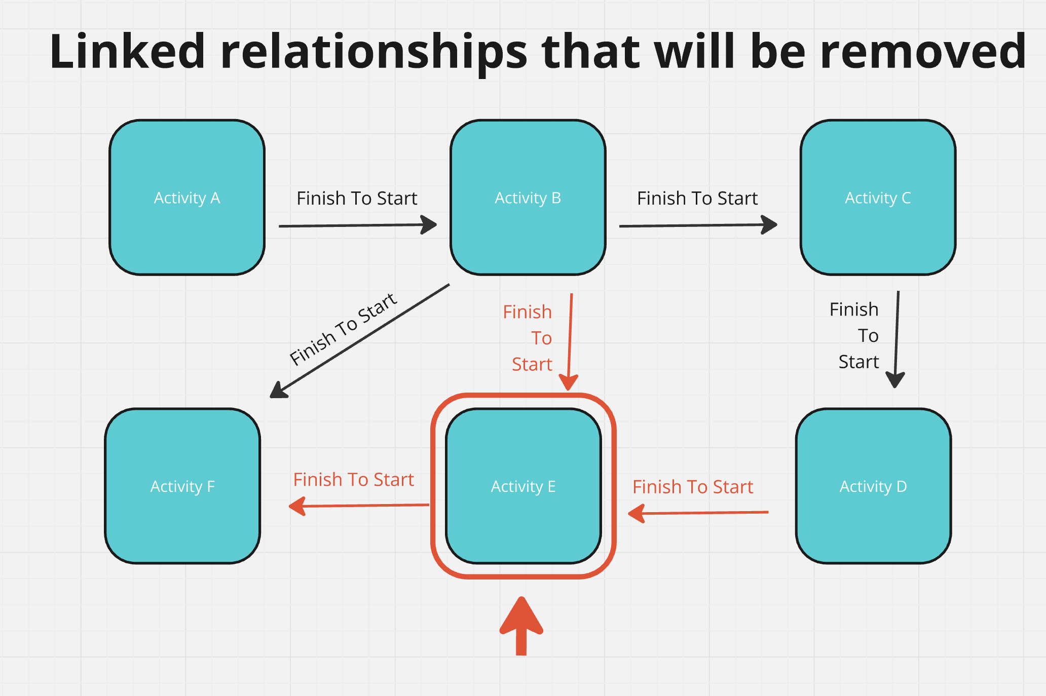 What happens is really simple. We just delete all the selected activities along with all their respective connections from the schedule file. A straightforward example is shown below: