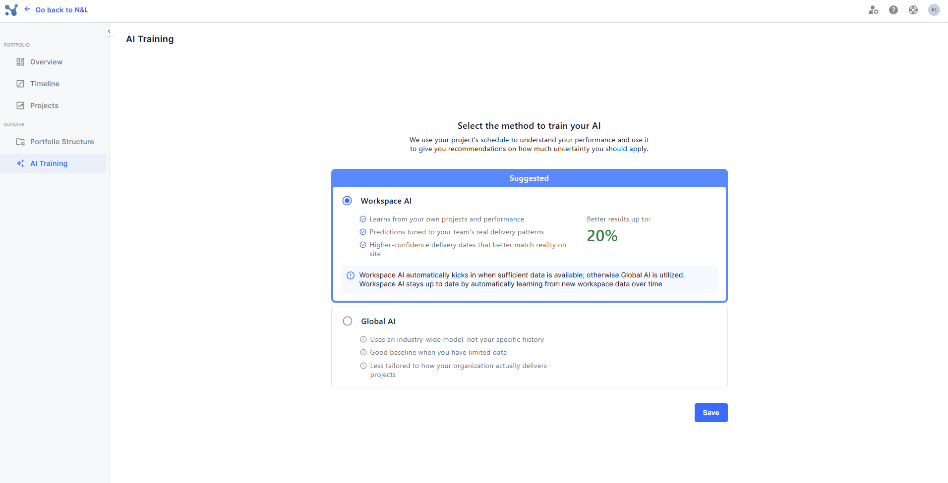 Workspace AI automatically activates when enough portfolio data is available to produce reliable QSRA results.